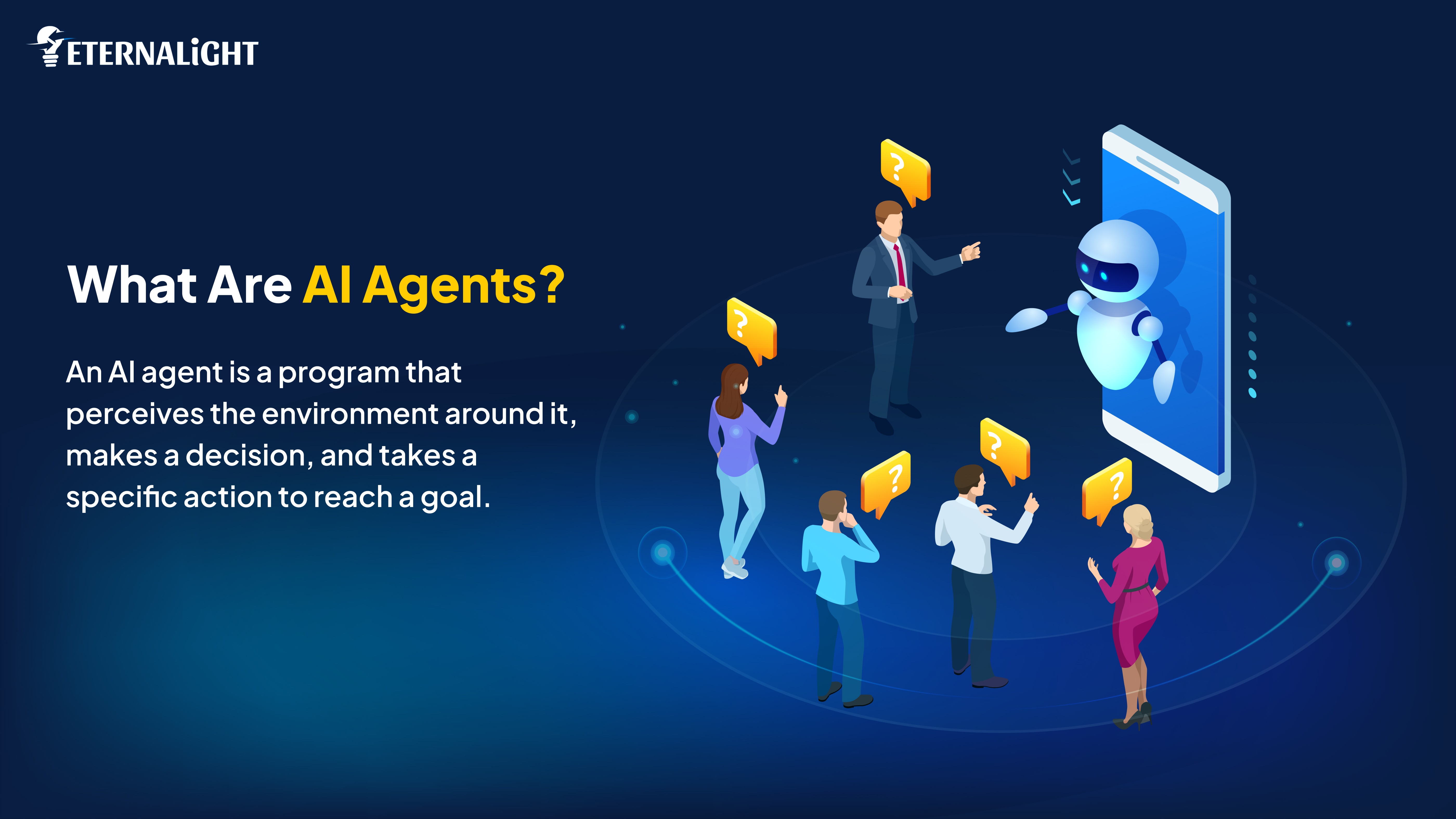 An AI agent is a program that perceives the environment around it, makes a decision, and takes a specific action to reach a goal.